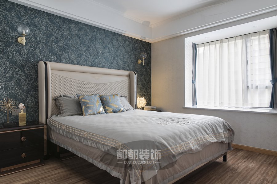 壁纸是根据整个设计风格以及吕先生的审美需求进行挑选的,提到碎花系列大多数人唯恐避之不及,认为太过俗气,但只要图案的比例分配和颜色把控好,出来的效果还是很好的,黛绿色打底白色碎花平铺,素净淡雅。 玻璃壁灯透出暖黄的光,复古又迷人,飘窗可营造一个休闲的区域,低饱和度的色彩,美式轻奢风尤为浓郁。