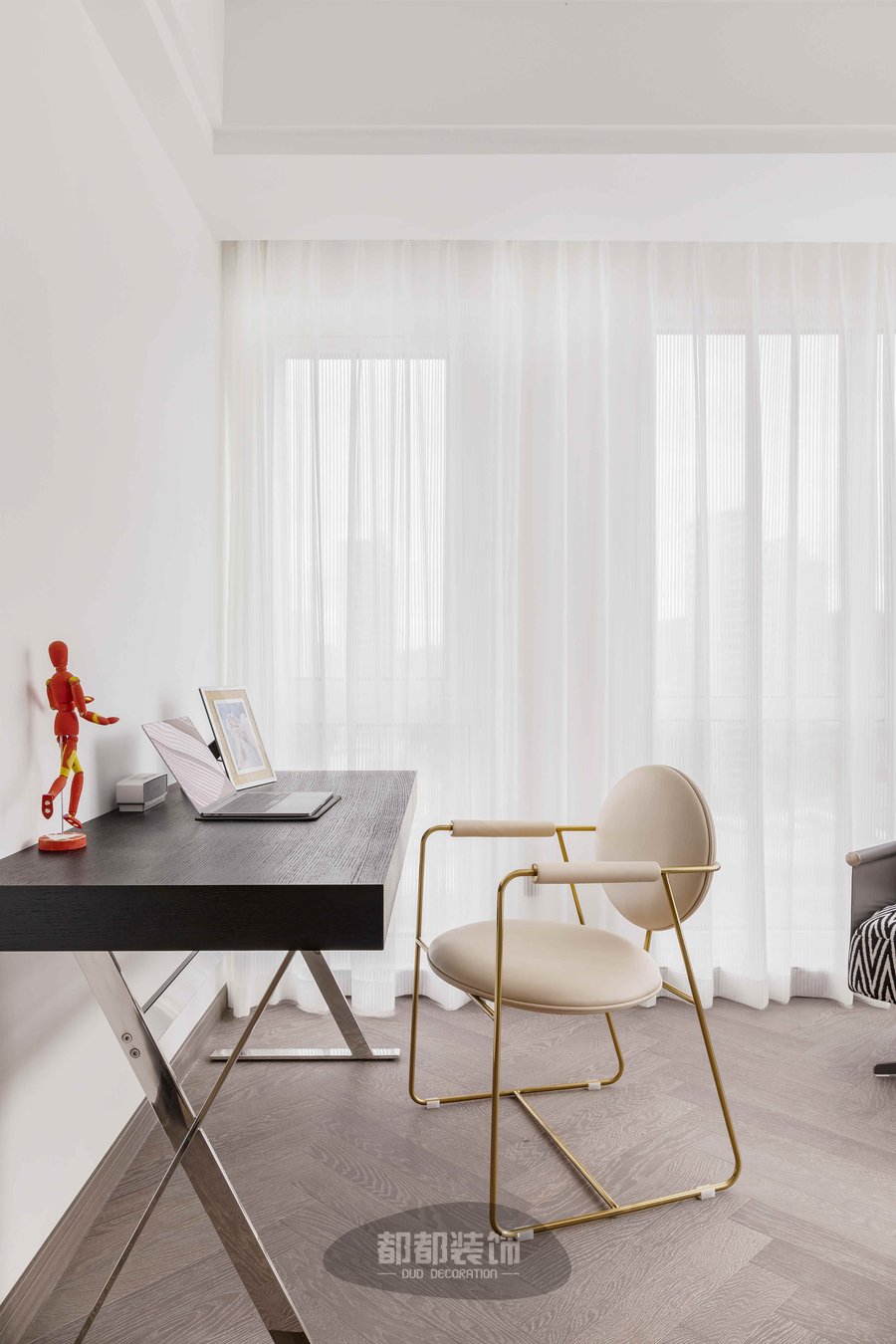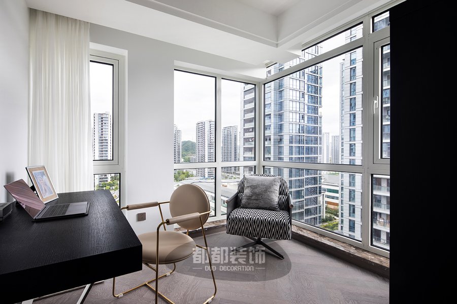 主卧是两面环窗的布局,每天起床都能看到两种不一样的风景,还能收获一个阳光满满的早晨,冬天阳光穿过落地窗晒到床上,暖洋洋的宽敞又明亮。 空间色彩以奶萌温柔的奶油色为主调,虽然配色淡雅柔和,却是有着治愈心灵的无穷力量。 旁边的小空间则被设计成了临时书房,同样也是双窗的布局,采光一级棒,相信这样好的工作环境一定能给马先生带来无限的创作灵感。 整体空间也没有做过多的改造,简简单单,方便日后根据不同需求的整改。