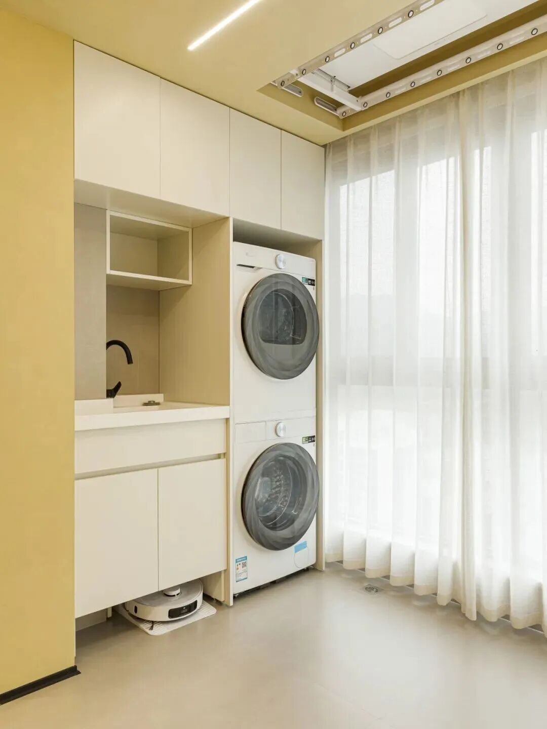 所以建议大家想做景观阳台的,直接用烘干机代替晾衣架,不装晾衣架直接避免衣服长满阳台。