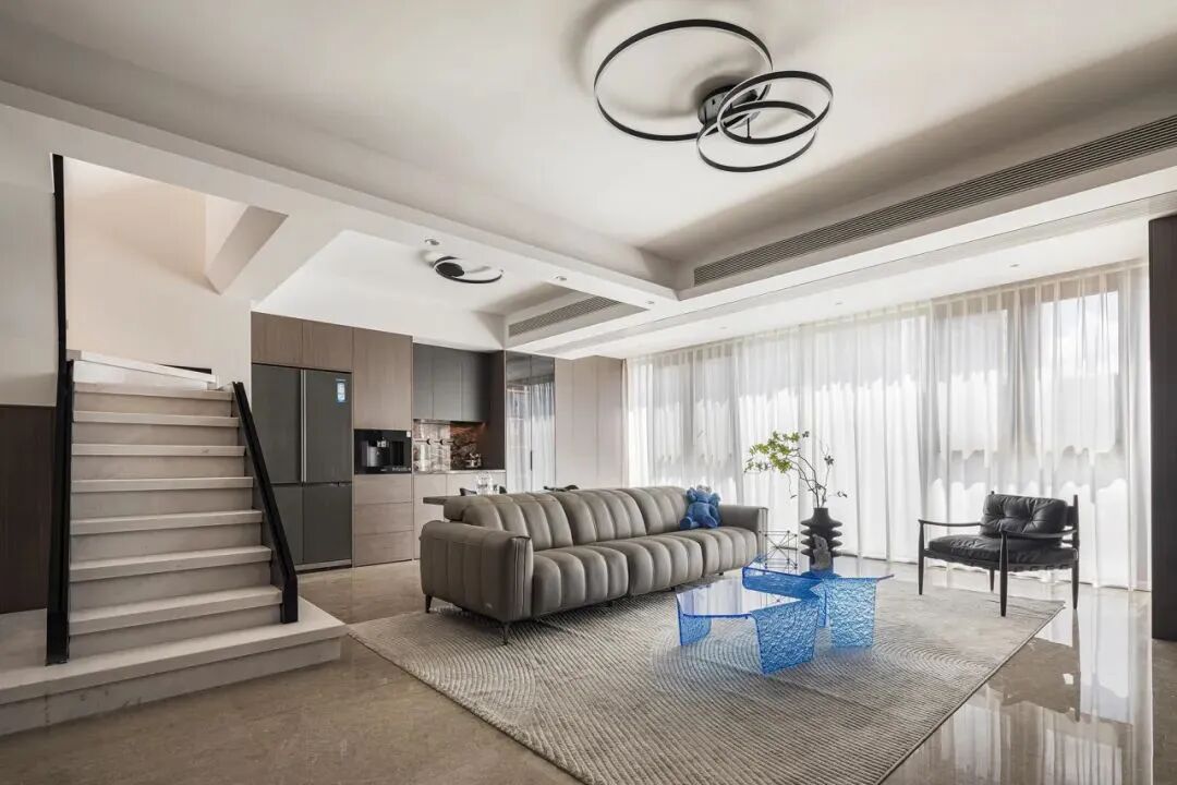 如果客厅空间较大且采用有主灯设计,可以选择大吊灯作为主灯,搭配筒灯作为辅助照明。