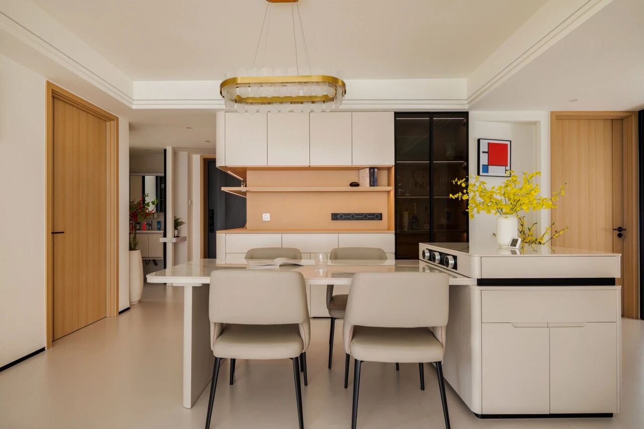如果家里的玄关和餐厅联通,也可以将餐边柜和玄关柜结合在一起做,进门即获得丝滑的空间切换效果。