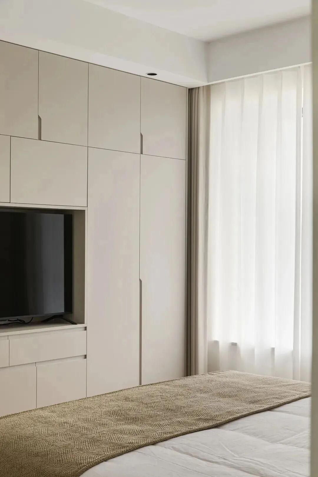 内嵌拉手可以既不破坏柜门的整体外观,又没有突出的拉手,减少了碰撞和刮伤的风险。