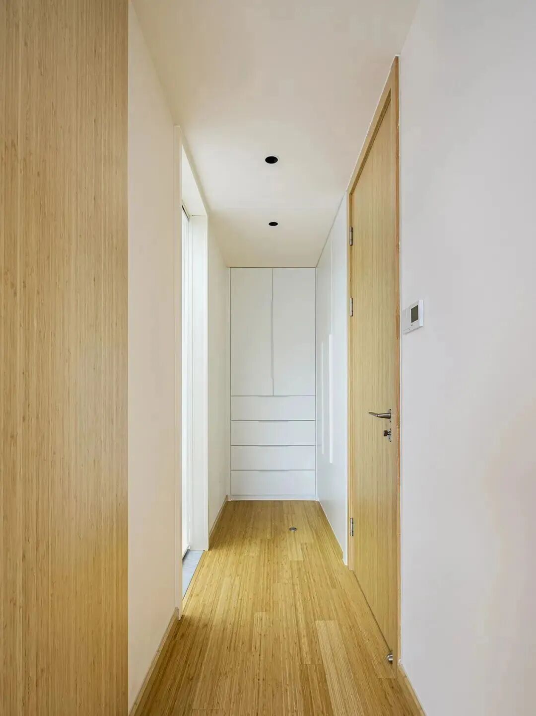 没有额外的拉手或装置,保持了柜门的平整和简洁,同时斜切的边缘提供了一个自然的手指抓取点,开启柜门轻松自如。