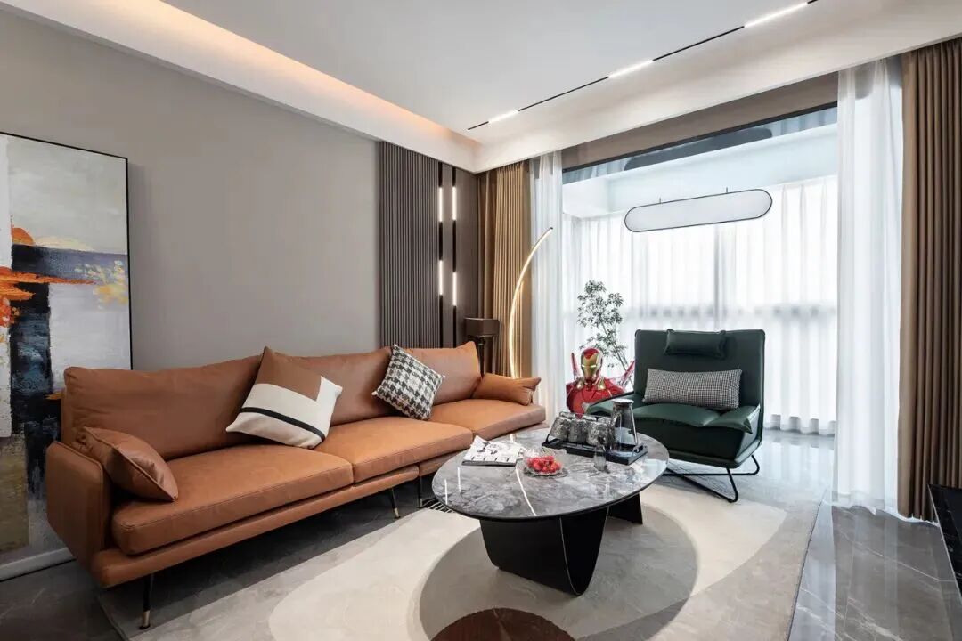 ● 如果是精装交付不想大改的,也可以考虑通过大面积地毯来平衡冰冷质感。