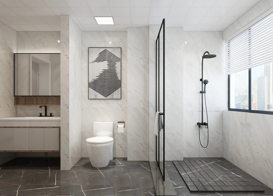 杂乱是浴室风水的大忌,这样会使空气滞碍难行。只放置最低限度的必需品,不宜将过多杂物放在卫浴空间,清扫用具不宜露在外面,应有专门的收纳。最理想的浴室就是那些摆设简洁,设计简单,通风良好的浴室。气及能量的流动会受到使用材质的影响,不同的地砖、地板的材质会产生不同的效果。例如大理石、花岗石,以及其他硬地,光滑的表面都会加速气能的流动,特别是在晶莹明亮、光可鉴人的情况下,效果更佳。它们有助于营造一种令人振奋、积极向上的气氛。