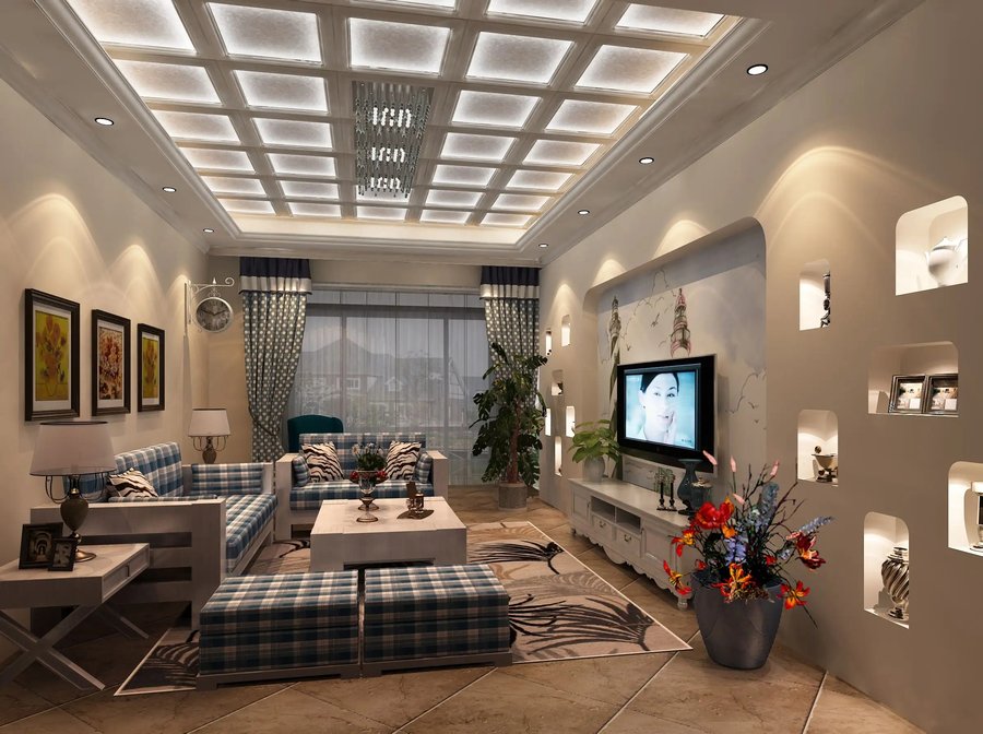 3、还有的是,中空型:但是在客厅四周做吊顶,而中间不做。