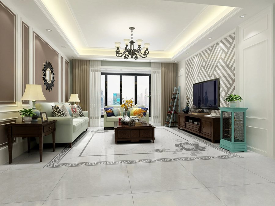 1、客厅地砖颜色搭配